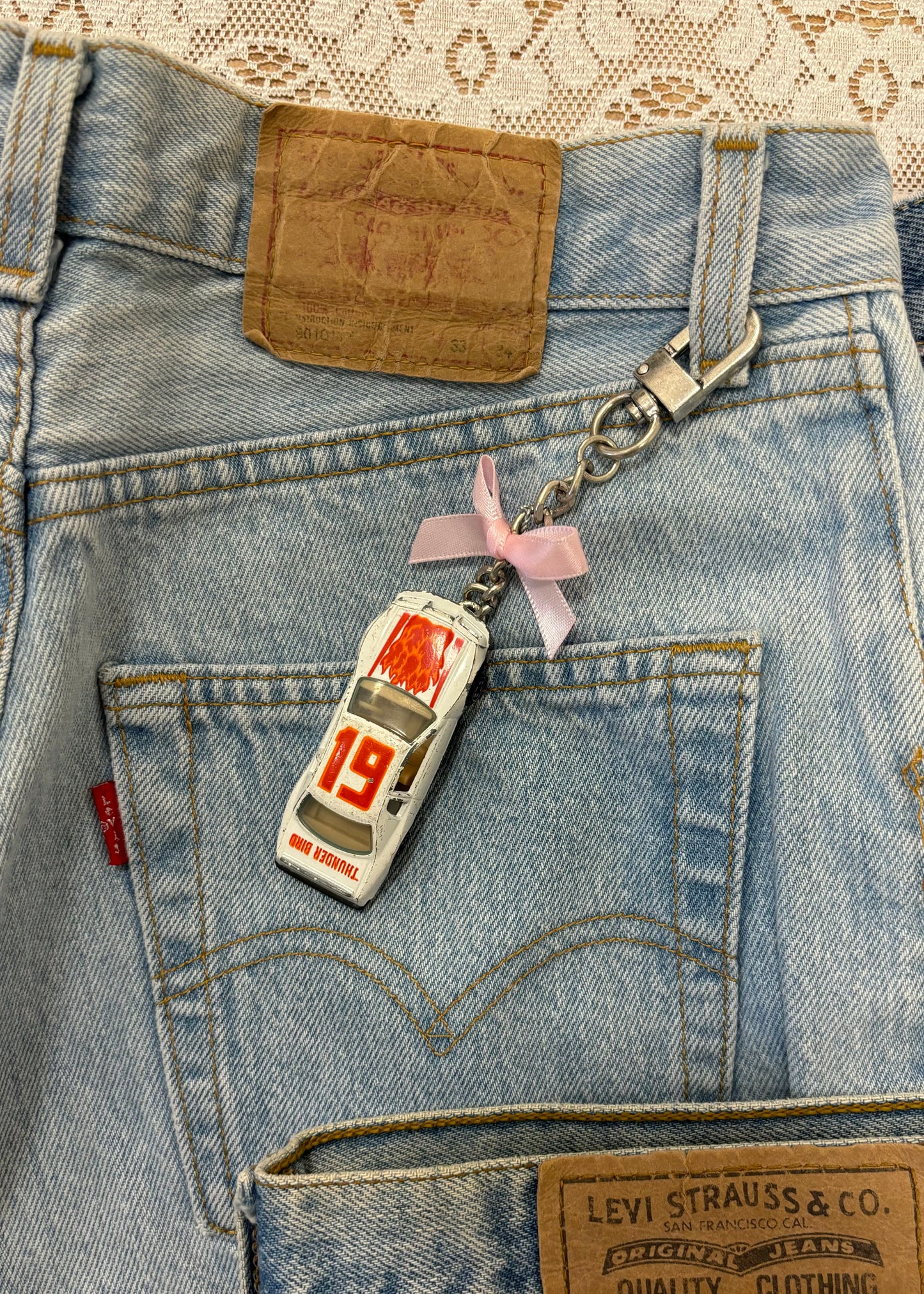 Reworked vintage car charm to click on your bag or jeans!